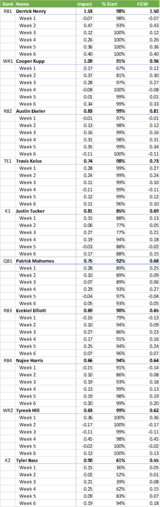 - Kupp is almost the #1 dFGW player despite Henry’s brilliance.