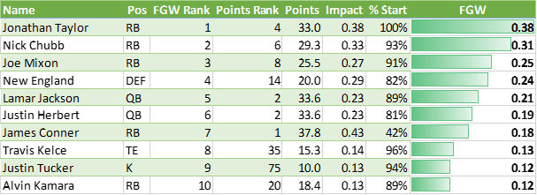 What is FGW? Check it out here: https://byroncobalt.com/2021/09/19/introducing-the-fantasy-game-wins-fgw-fantasy-football-player-scoring-system/