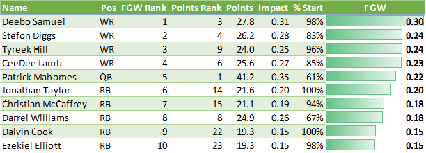 What is FGW? Check it out here: https://byroncobalt.com/2021/09/19/introducing-the-fantasy-game-wins-fgw-fantasy-football-player-scoring-system/