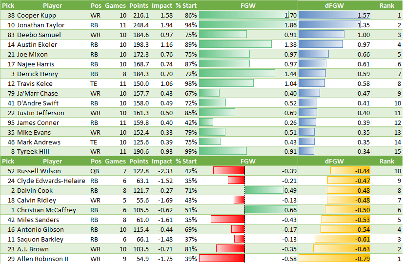 - Get this: Jonathan Taylor’s last 8 weeks have a higher FGW score (2.03) than Derrick Henry’s 8-week start to the season. Maybe he actually is the #1 pick next year?