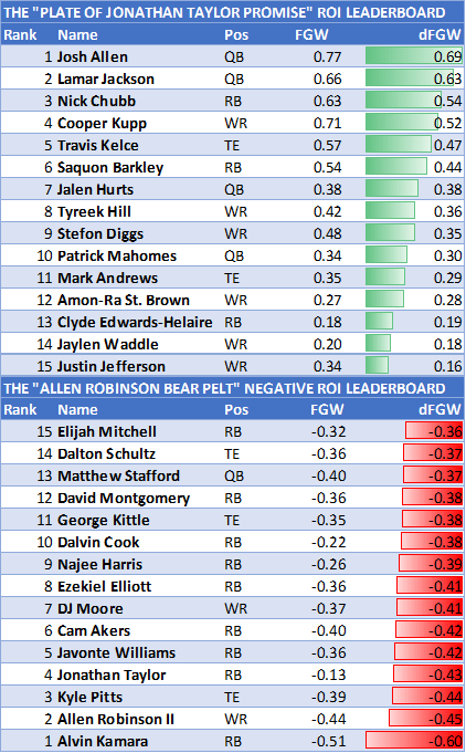 - The dFGW adjustment for Allen is much larger than Jackson, showing how much the expectation drops even from Round 2 to Round 4.