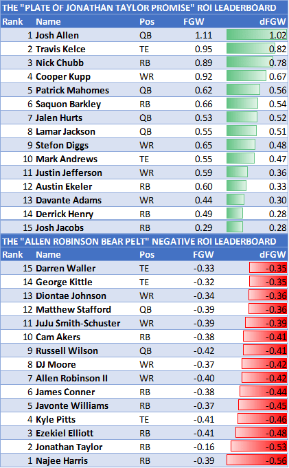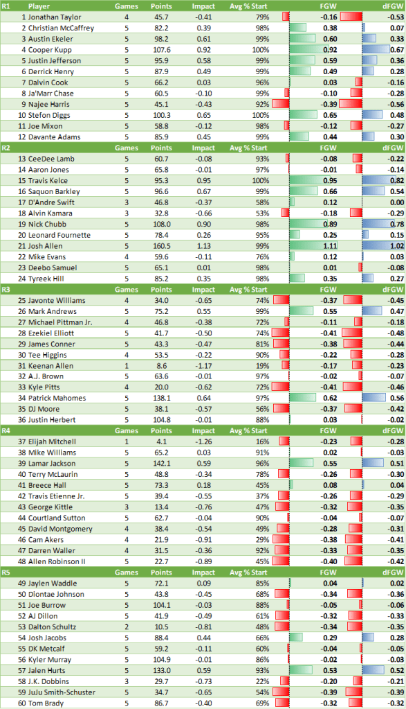 Whelp, gotta go – almost first light of the fifth day and I have an appointment with some horselords. But for everyone that drafted Jonathan Taylor and Javonte Williams 1-2, just remember that we’re all going down in this ship together. It’s been a privilege and an honor.