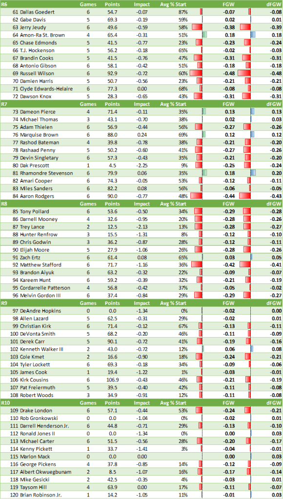 - Unfortunately for AJ Dillon, we don’t adjust dFGW for quad size. Mike Davis tried to propose that last year.