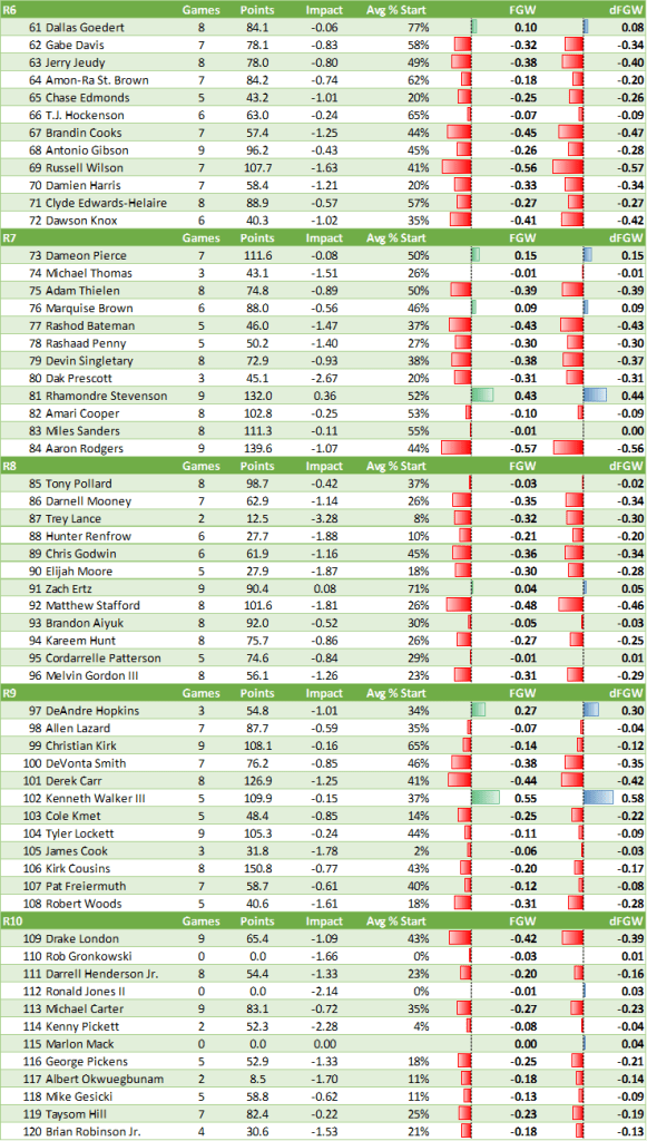 Unlike the sneaky players that keep entering your lineup and bleeding you dry of wins, this week I went back and looked at the players that missed out on the most FGW by way of bench-riding in fantasy lineups.