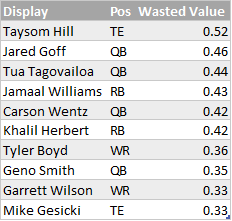 Bonus List – Most Wasted Fantasy Value Of The Year