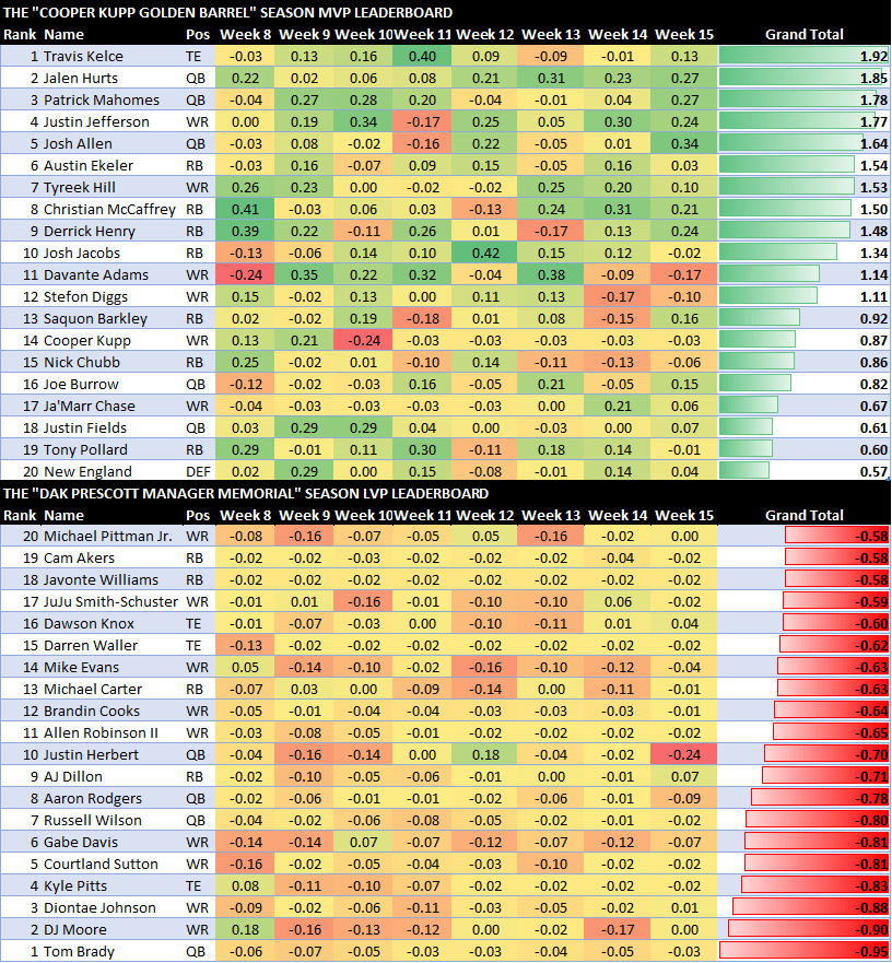 Quick aside: I was on a podcast this week! Check out FSM Fantasy for a deeper recap of Week 15 and a lookahead to Week 16: