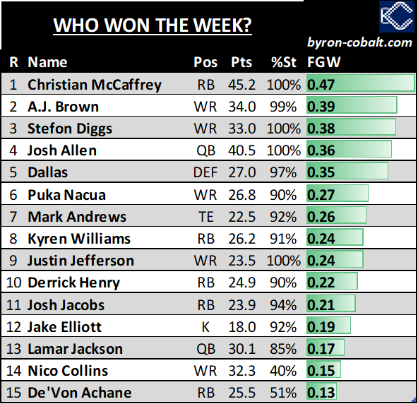 - Dallas Defense would actually be in 2nd with an average game Week 3, above McCaffrey with a good one.