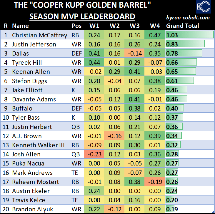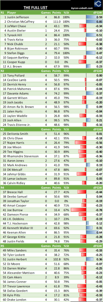 - Tyreek and Keenan taking a bit of a step back on the list.