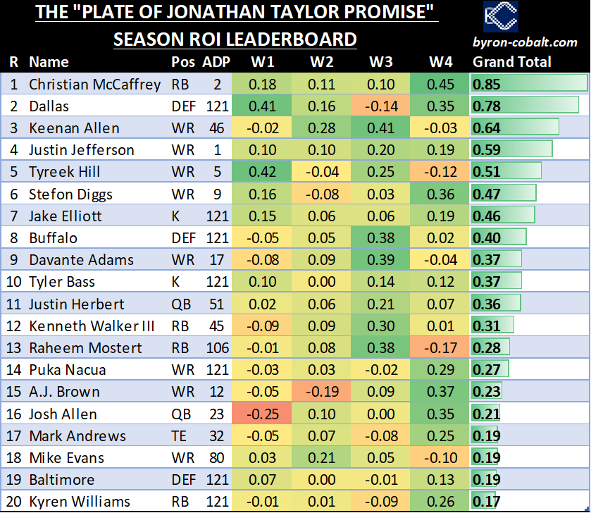 - Main item of note on the ROI leaderboard might be how close Dallas is to the top spot, even with the bad week 3.
