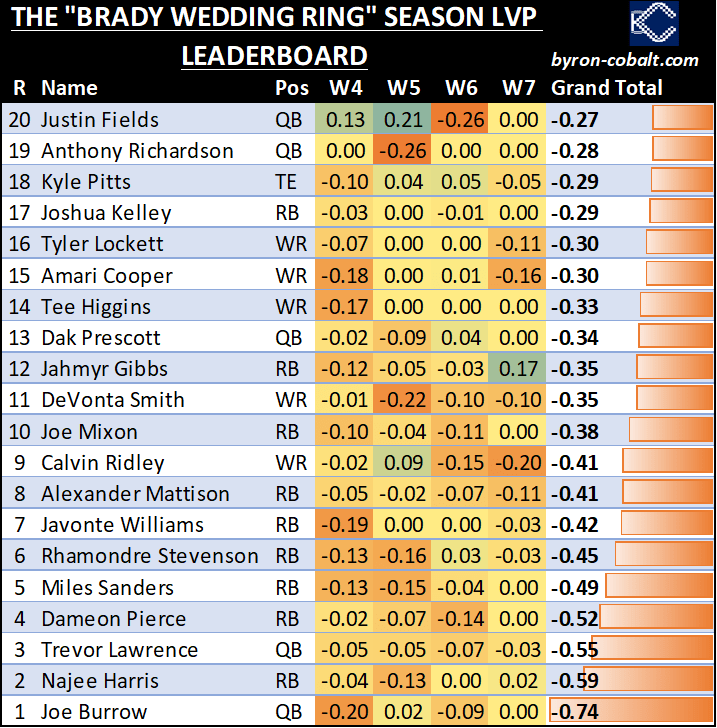 - Lamar with his best week since Week 3 of 2022. Welcome back, Lamar!
